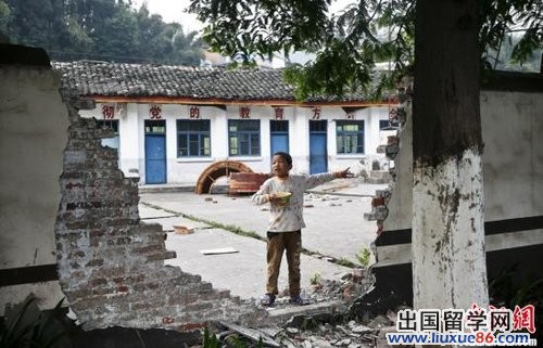 4月25日,9歲的魯小杰站在蘆山朝陽村中心小學(xué)的斷墻前,他還端著自己的早飯——方便面。由于家就在附近,他常來學(xué)校轉(zhuǎn)轉(zhuǎn),他的哥哥甚至把帳篷搭在了學(xué)校里。地震時(shí)是周六,學(xué)生并沒在這里,因而避免了人員傷亡。魯小杰說,自己很想和同學(xué)們在一起,但還得等待板房小學(xué)的建成。中新社發(fā) 張浩 攝