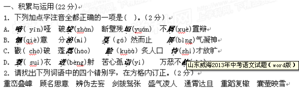 威海2013年中考語文試題:點(diǎn)擊進(jìn)入免費(fèi)下載(word版)