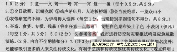 威海2013年中考語文答案:點(diǎn)擊進(jìn)入免費(fèi)下載(word版)