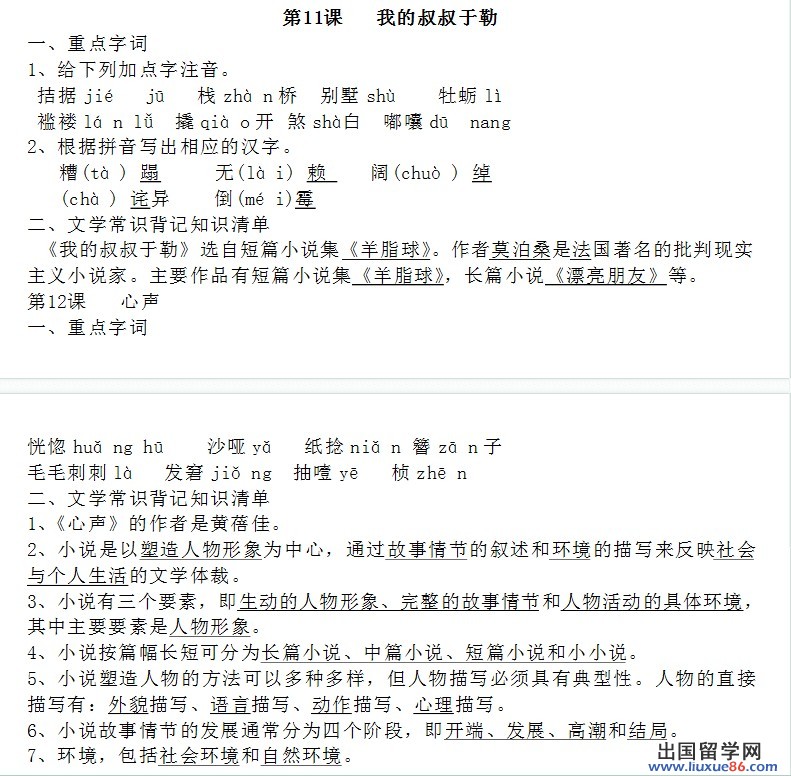 19.稱呼略。作用:于勒的好與壞,親與疏完全取決于錢財,充分刻畫了“菲利普夫婦自私冷酷、唯利是圖的性格”。