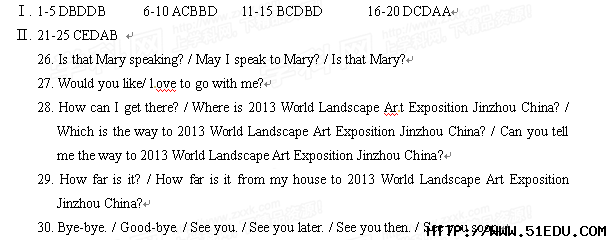 以上是出國留學網(wǎng)(liuxue86.com)小編已為大家整理出的遼寧營口2013年中考英語答案(word版),更多內(nèi)容請查看精品2013年中考試卷及答案專題。