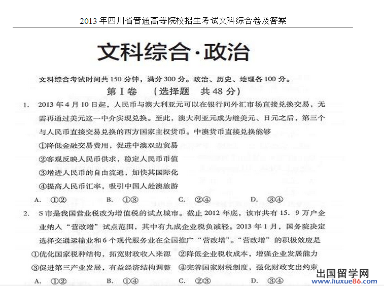點(diǎn)擊查看:2013年四川高考文綜真題及答案