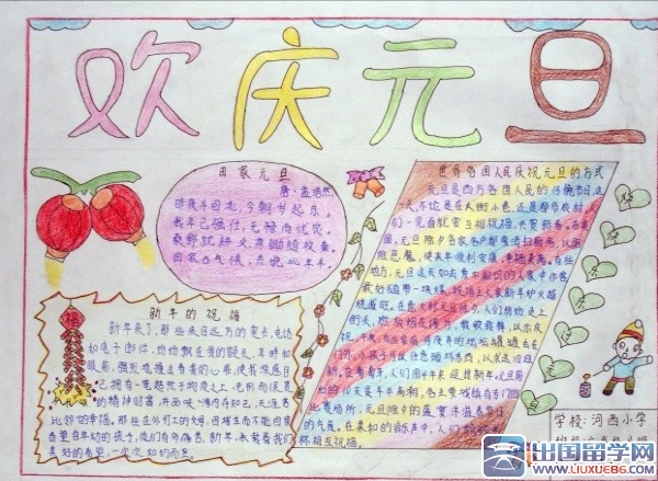 元旦就到了,出國(guó)留學(xué)網(wǎng)(m.liuxue86.com)小編為小朋友準(zhǔn)備好了“歡慶元旦”主題的手抄報(bào),歡迎學(xué)習(xí)參照。