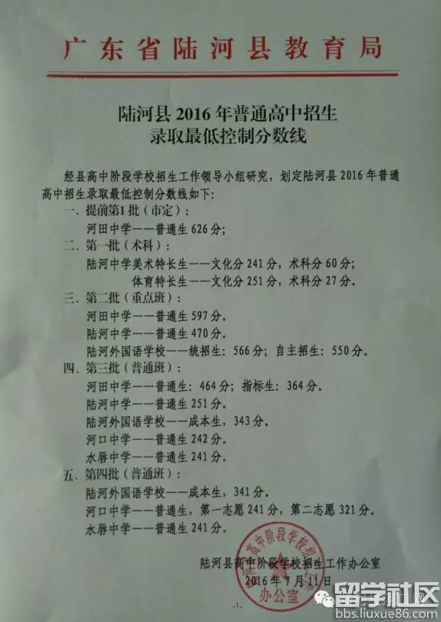 出國留學(xué)網(wǎng)中考頻道的小編會(huì)及時(shí)為廣大考生提供2016陸河中考分?jǐn)?shù)線,希望對(duì)大家有所幫助。