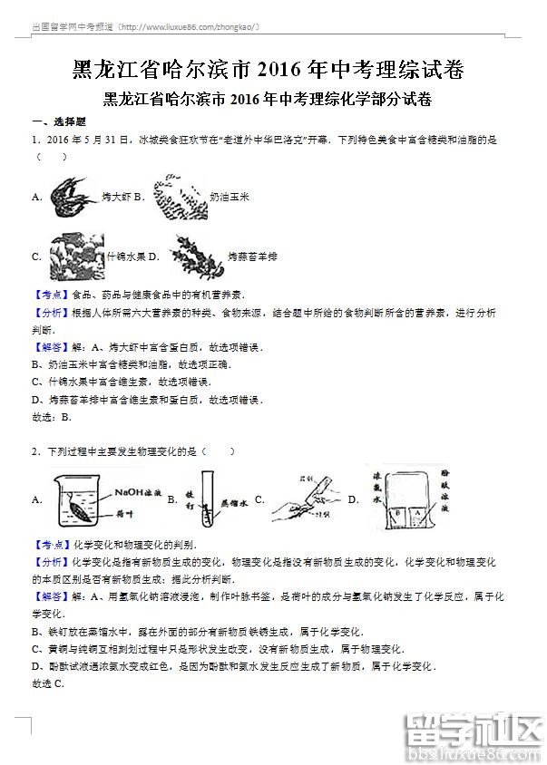 中考在即,下面是出國留學(xué)網(wǎng)中考頻道第一時間發(fā)布2016哈爾濱中考理綜試卷及答案(word版),考友們可以登錄本網(wǎng)站查看最新各科目中考答案發(fā)布最新動態(tài)。