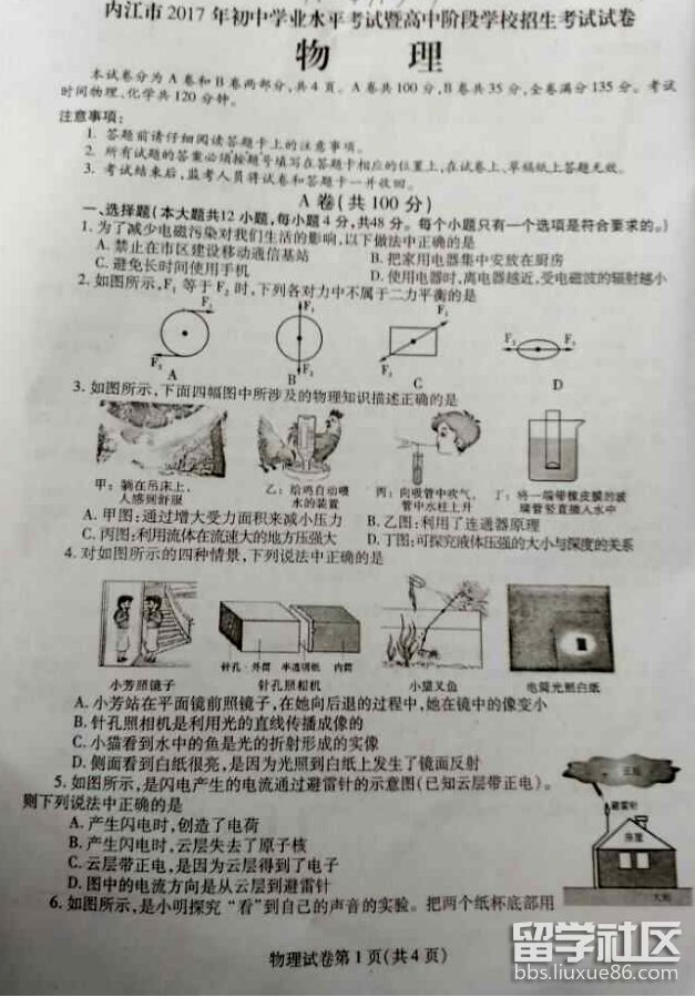 十磨百煉,鐵杵成針;千淘萬漉,沙盡金見。以下是由出國留學(xué)網(wǎng)中考頻道編輯為您整理的 [2017年內(nèi)江中考物理試題公布],供您參考。