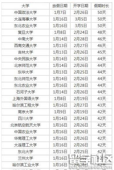 大部分高校從一月中旬開始放假,至二月中下旬開學(xué)。中國政法大學(xué)以假期時長五十天位居排行榜第一。寒假時長同樣為五十天的高校還有大連海事大學(xué)(分?jǐn)?shù)線,專業(yè)設(shè)置)和東北農(nóng)業(yè)大學(xué),這兩所高校居然把假期延長至三月份,完全躲開了開學(xué)高峰期,搶票回校根本不用擔(dān)心啊。