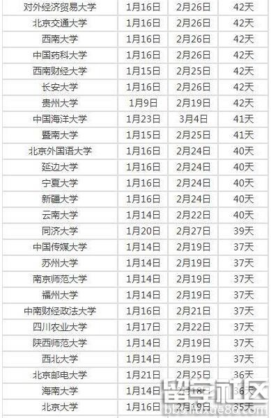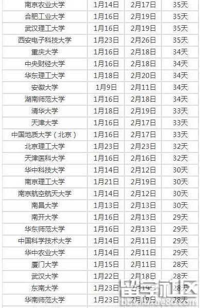 網(wǎng)友版:2017年高校寒假時長排行榜 最高有50天