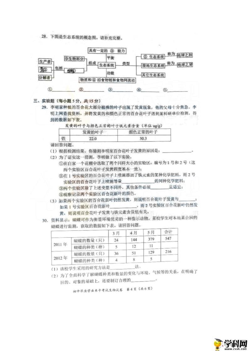 2017長(zhǎng)沙市中考生物試卷帶答案