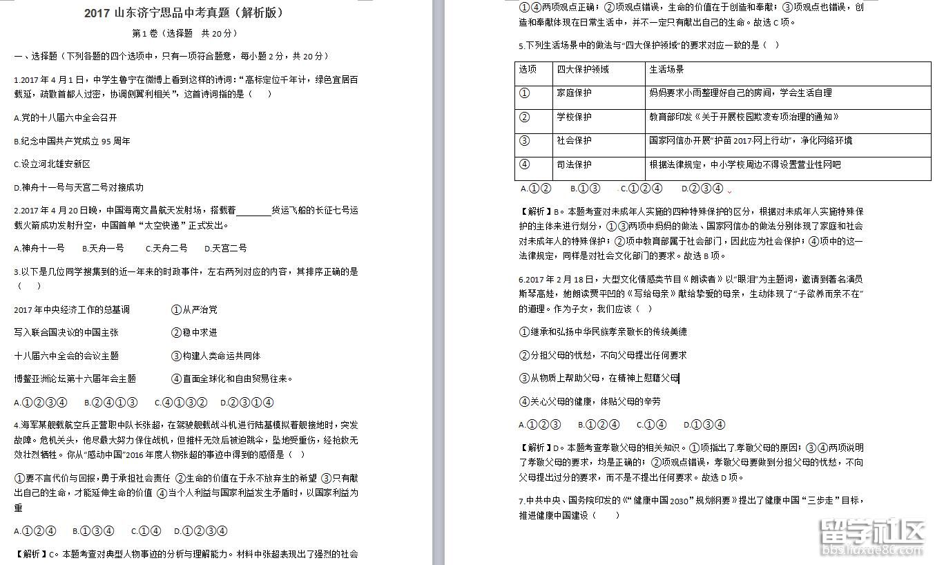 中考各科真題及答案已經(jīng)陸續(xù)公布,出國(guó)留學(xué)網(wǎng)中考頻道為大家提供[2017年濟(jì)寧中考政治試卷及答案(word版)] ,希望能幫助大家順利估分。更多中考分?jǐn)?shù)線、中考成績(jī)查詢、中考志愿填報(bào)、中考錄取查詢信息等信息請(qǐng)關(guān)注我們網(wǎng)站的更新!