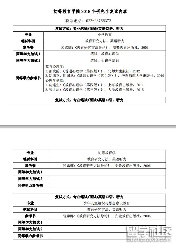 天津師范大學(xué)初等教育學(xué)院2018考研復(fù)試內(nèi)容及參考書