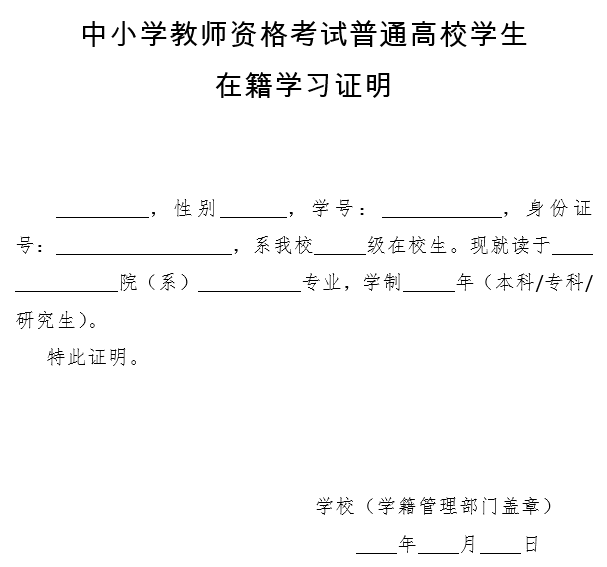 1.中小學(xué)教師資格考試普通高校學(xué)生在籍學(xué)習(xí)證明