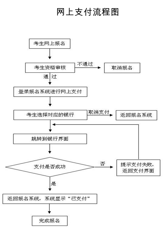 (三)網(wǎng)上繳費(fèi):現(xiàn)場確認(rèn)通過,考生須在12月22日12:00前完成網(wǎng)上付費(fèi)(網(wǎng)上支付流程圖見附件3)。未經(jīng)現(xiàn)場確認(rèn)、未按規(guī)定時(shí)間繳納報(bào)名考試費(fèi)的人員,視為自動(dòng)放棄本次報(bào)考。