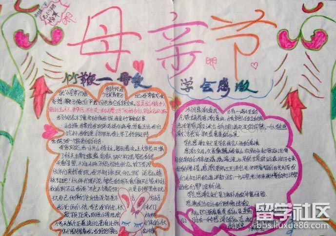 母親節(jié)馬上就要到了,學(xué)校老師讓學(xué)生準(zhǔn)備一份母親節(jié)手抄報(bào)。那么大家知道二年級(jí)母親節(jié)手抄報(bào)圖片怎么畫嗎?以下是出國留學(xué)網(wǎng)小編為您整理的“二年級(jí)母親節(jié)手抄報(bào)圖片”,供您參考,更多詳細(xì)內(nèi)容請(qǐng)點(diǎn)擊出國留學(xué)網(wǎng)(m.liuxue86.com)查看。