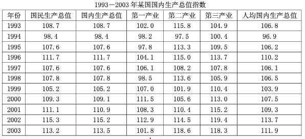 【答案】C。解析:人均國內(nèi)生產(chǎn)總值增長最快的年份就是指數(shù)最大的年份2002年。