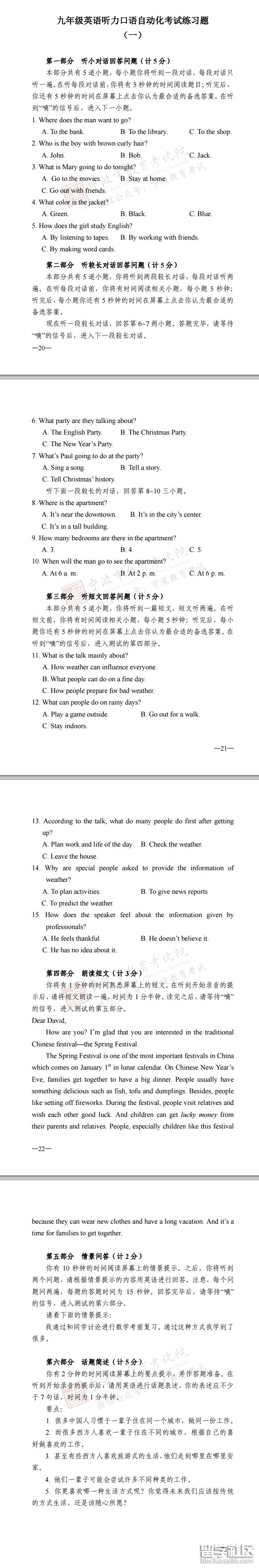 出國留學網(wǎng)中考網(wǎng)為大家提供寧波中考英語聽力口語自動化考試練習題(一),更多中考英語復(fù)習資料請關(guān)注我們網(wǎng)站的更新!