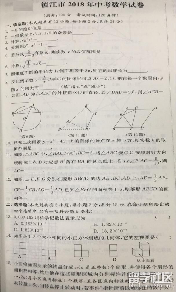本網(wǎng)站在第一時間為您奉獻中考真題《2018年江蘇鎮(zhèn)江中考數(shù)學(xué)真題》,幫助考生分析試卷及解題思路,為你的考試道路更加順暢而努力。請您關(guān)注。