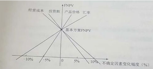 3.對某技術(shù)方案的財務(wù)凈現(xiàn)值(FNPV)進(jìn)行單因素敏感性分析,投資額、產(chǎn)品價格、經(jīng)營成本以及匯率四個因素的敏感性分析如下圖所示,則對財務(wù)凈現(xiàn)值指標(biāo)來說最敏感的因素是( )。
