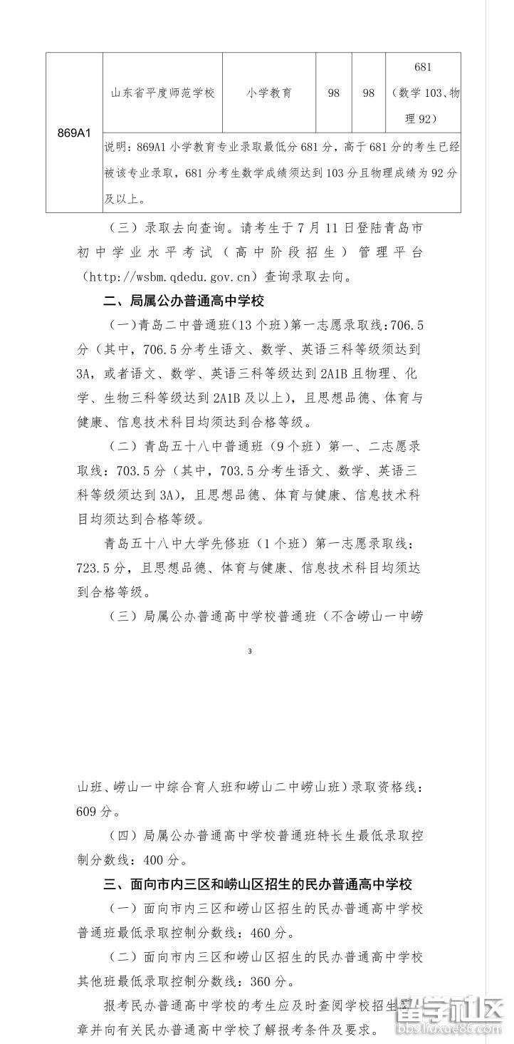 青島市2018高中階段學(xué)校招生錄取分?jǐn)?shù)線(第一次)