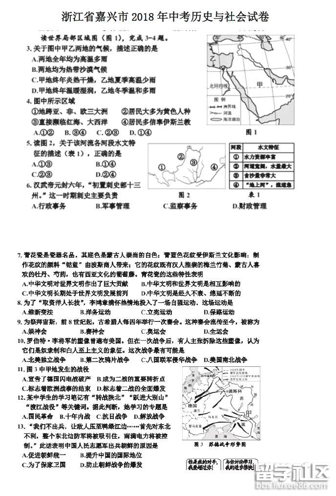 不管結(jié)果怎樣,經(jīng)歷過,總會有結(jié)果的!中考的朋友們,為你們祝福!歡迎閱讀由本網(wǎng)站編輯為您帶來的《2018年浙江嘉興中考歷史試題及答案》,更多中考資訊請關(guān)注本站。