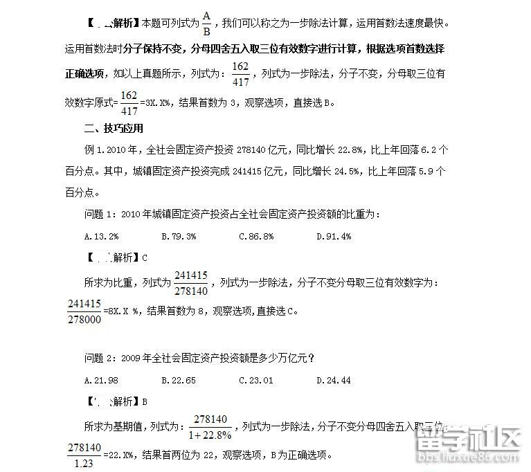 總結:資料分析列式為一步除法時,選擇首數(shù)法進行計算,分子保持不變,分母取三位有效數(shù)字,根據(jù)選項首數(shù)直接進行選擇。