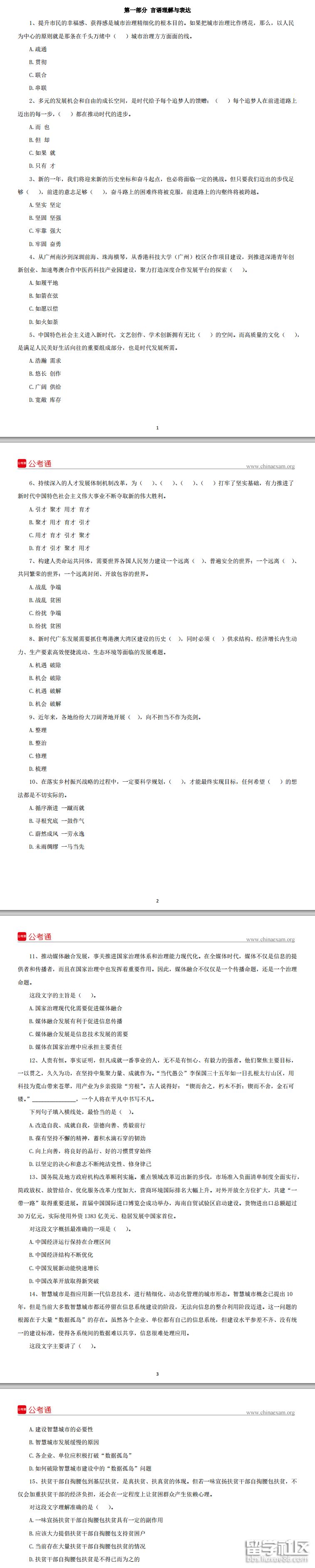 2019廣東公務(wù)員考試行測試題:言語理解與表達(dá)(縣級)