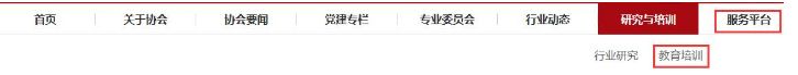 2、找到首頁導(dǎo)航中的“研究與培訓(xùn)”欄目下的“教育培訓(xùn)”或直接點(diǎn)擊“服務(wù)平臺(tái)”進(jìn)入