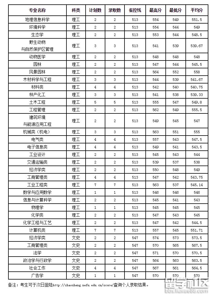 東北林業(yè)大學2018廣西本科第一批錄取分數(shù)線