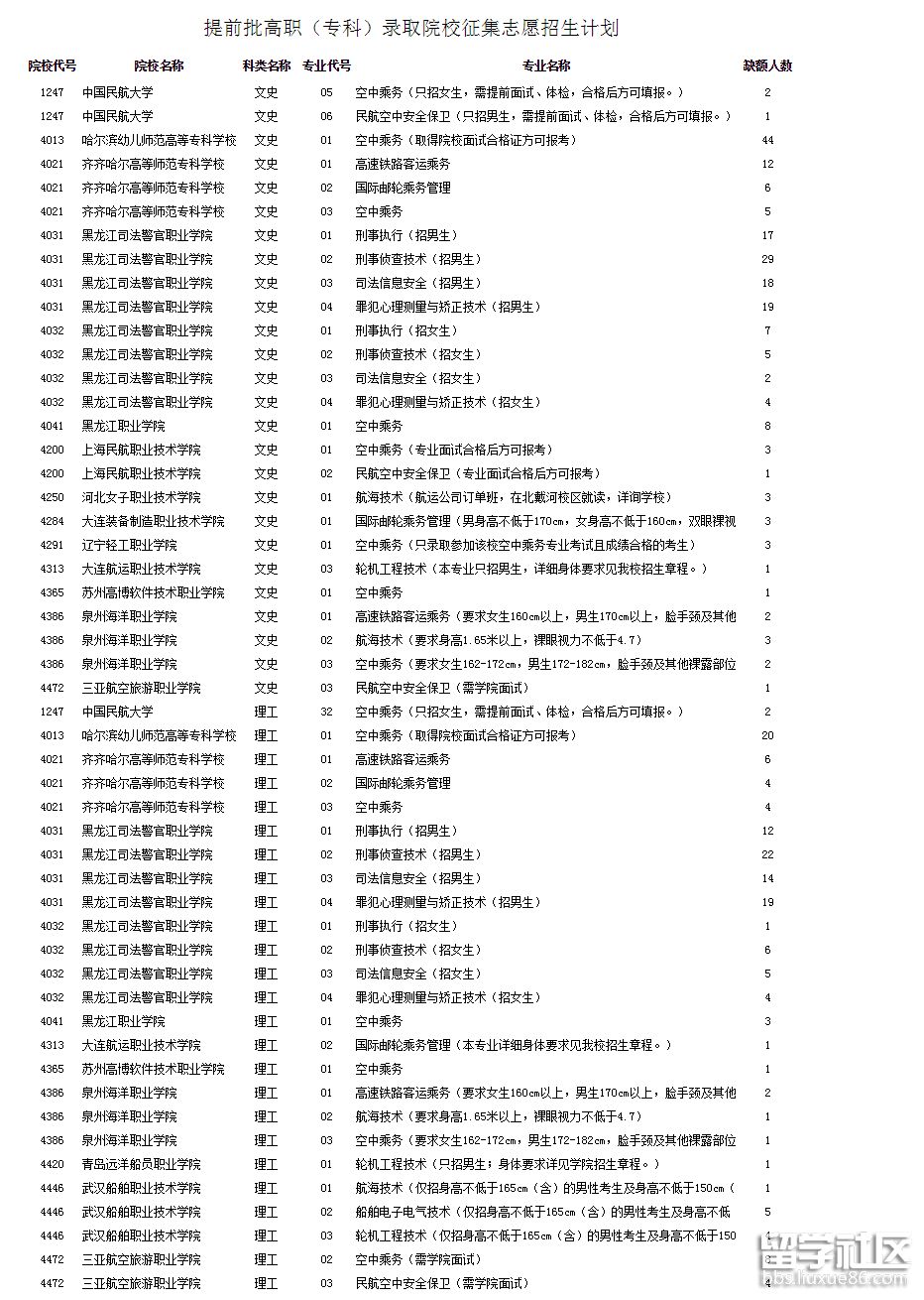 2018黑龍江提前批高職(專科)錄取院校征集志愿招生計劃