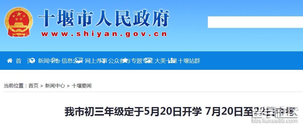 一、根據(jù)省疫情防控指揮部要求并向省指揮部報(bào)備,十堰市初三年級定于5月20日開學(xué)。2020年十堰市中考時(shí)間為7月20日-22日。
