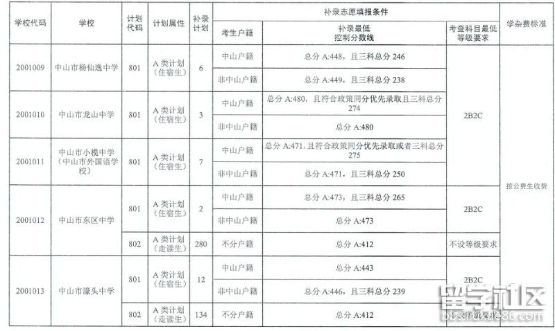一、中山市2020年補(bǔ)錄學(xué)校分?jǐn)?shù)