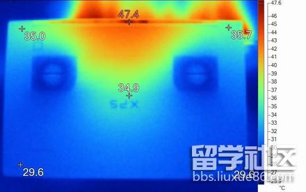 背面溫度如上圖所示,最高溫度47.4℃,中心點溫度34.9℃。