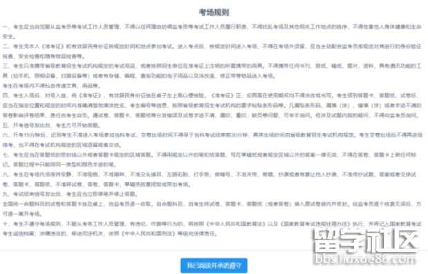 點擊“我已閱讀并承諾遵守”按鈕后,進入省級教育招生考試機構(gòu)公告頁面。