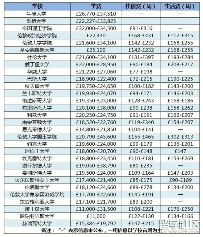 2022年英國(guó)TOP30大學(xué)的留學(xué)生平均花費(fèi),如下圖: