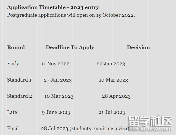2023年秋季入學(xué)申請(qǐng)截止日期: