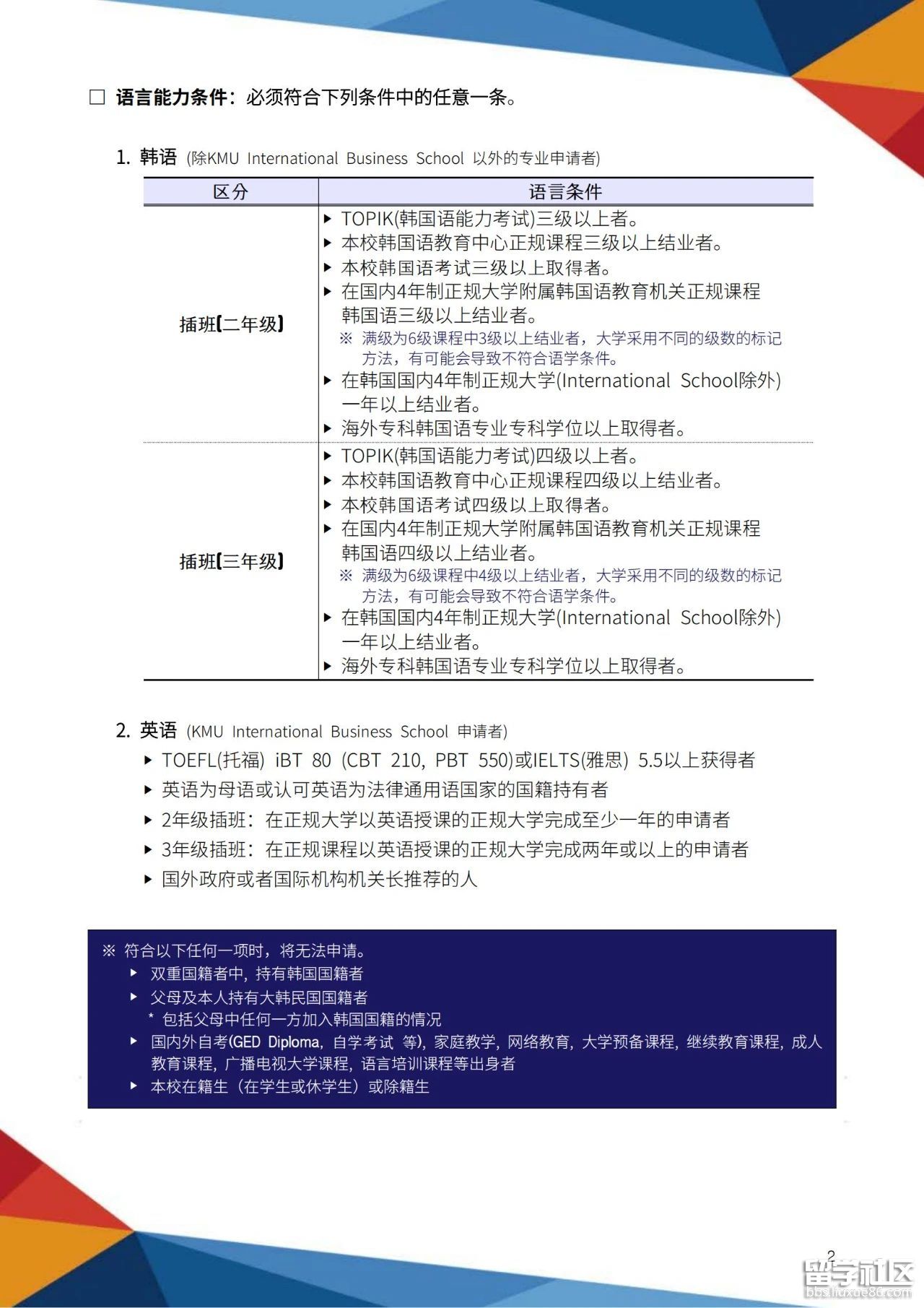 2023年9月韓國國民大學(xué)本科插班招生簡章一覽