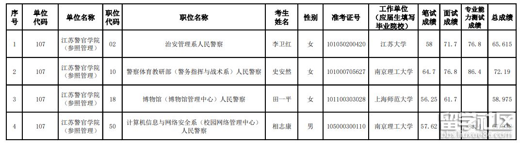 根據《江蘇省2022年度考試錄用公務員公告》規(guī)定,經筆試、體能測評、面試(專業(yè)技能測試)、體檢、考察(政審)等程序,報考江蘇省省級機關職位的李衛(wèi)紅、史安然、田一平、相志康4名同志符合參照公務員法管理人員(人民警察)錄用條件,擬予錄用,現(xiàn)予以公示,公示時間為2023年2月13日至2月17日。