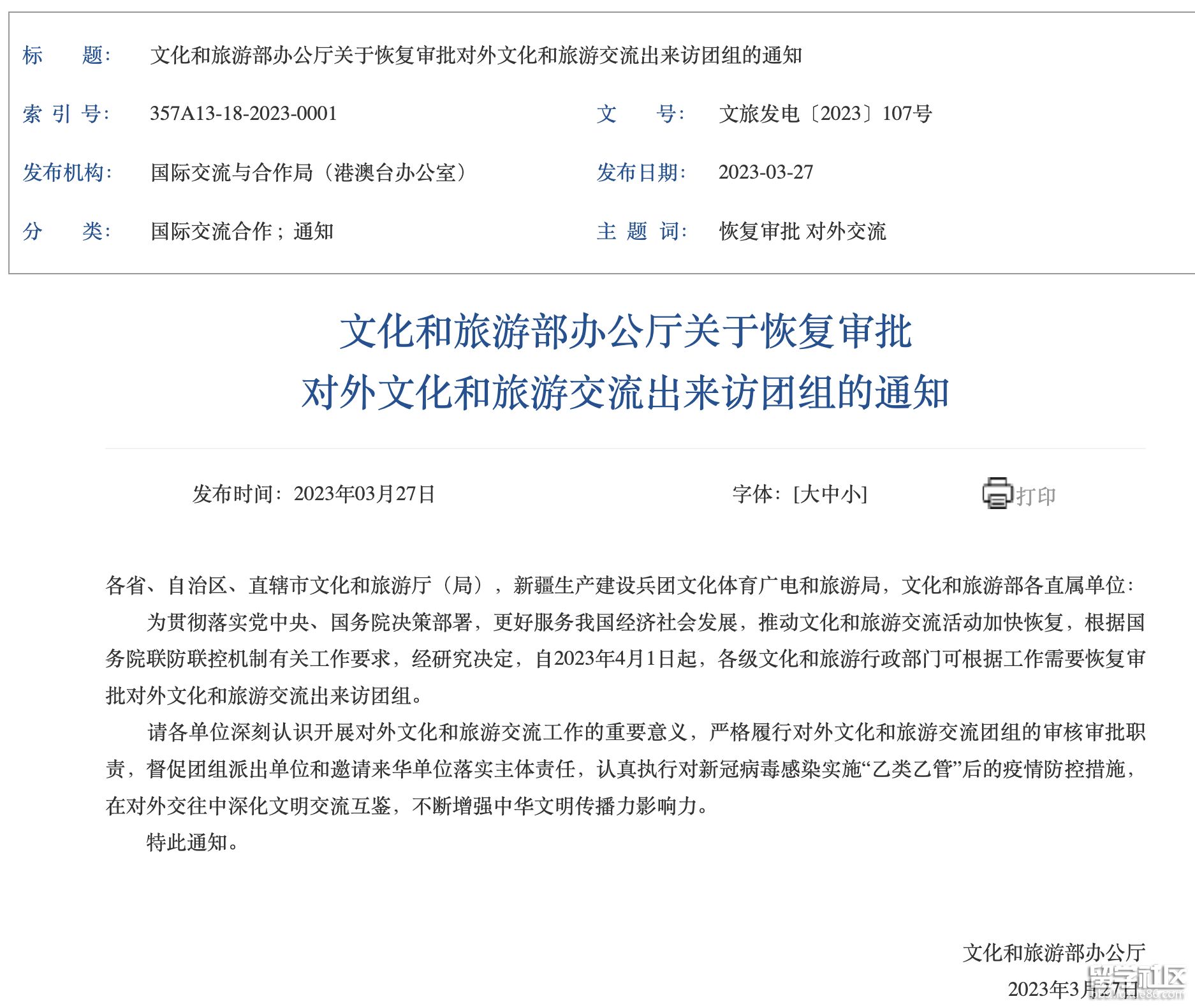中國(guó)文旅部宣布,從4月1日起,恢復(fù)審批對(duì)外文化和旅游交流出來(lái)訪團(tuán)組!
