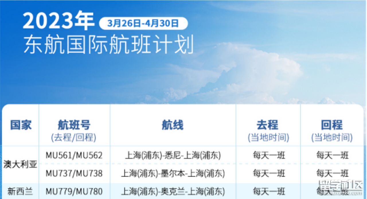 東方航空澳洲航線,上海往返悉尼、墨爾本,每天一班。
