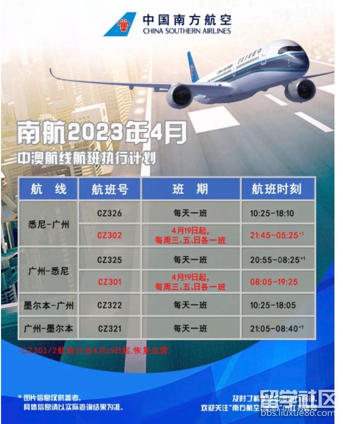 4月2日前悉尼、墨爾本始發(fā)的CZ326、CZ322航班計(jì)劃起飛時(shí)刻仍分別為11:25am和11:20am。