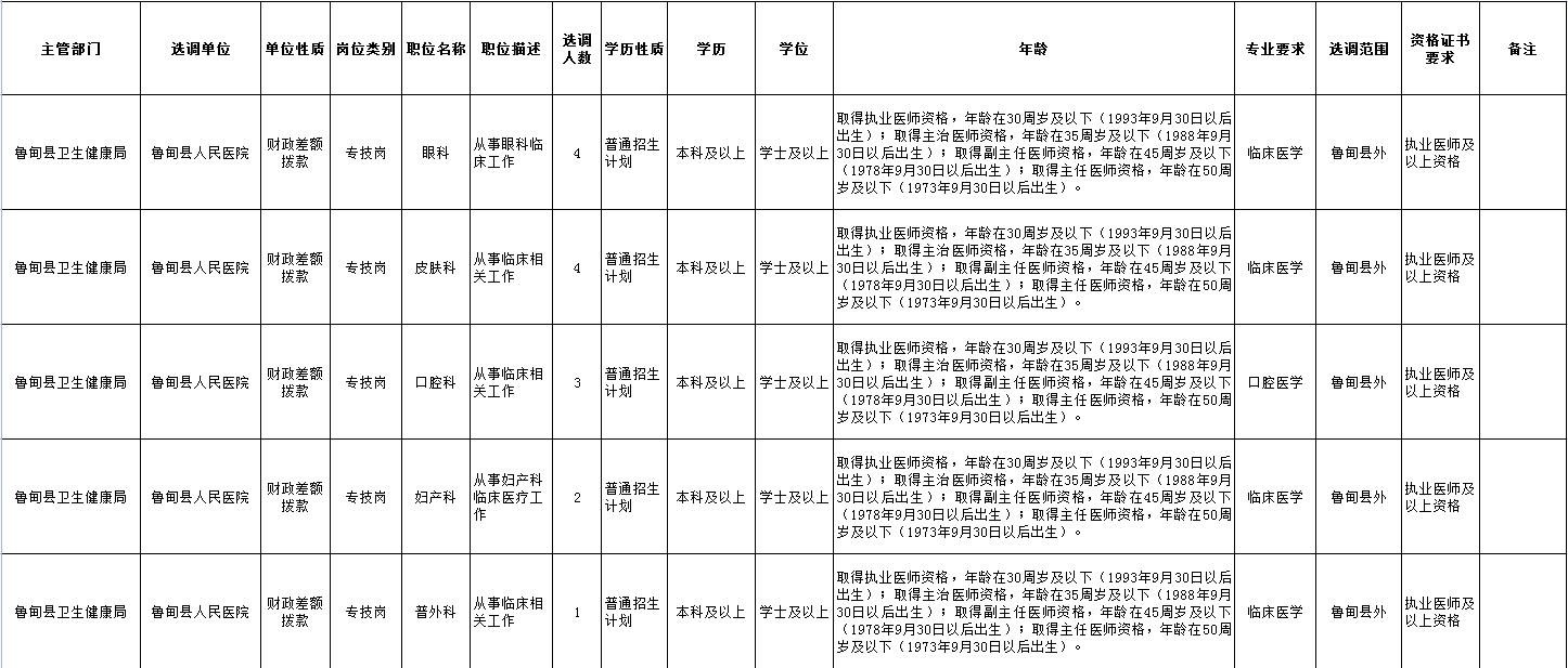 魯?shù)榭h衛(wèi)生健康系統(tǒng)面向縣外公開選調(diào)醫(yī)務人員公告