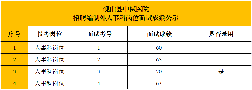 硯山縣中醫(yī)醫(yī)院招聘編制外人事科崗位面試成績(jī)公示