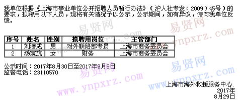 2017年上海市海外救援服務(wù)中心擬聘人員公示