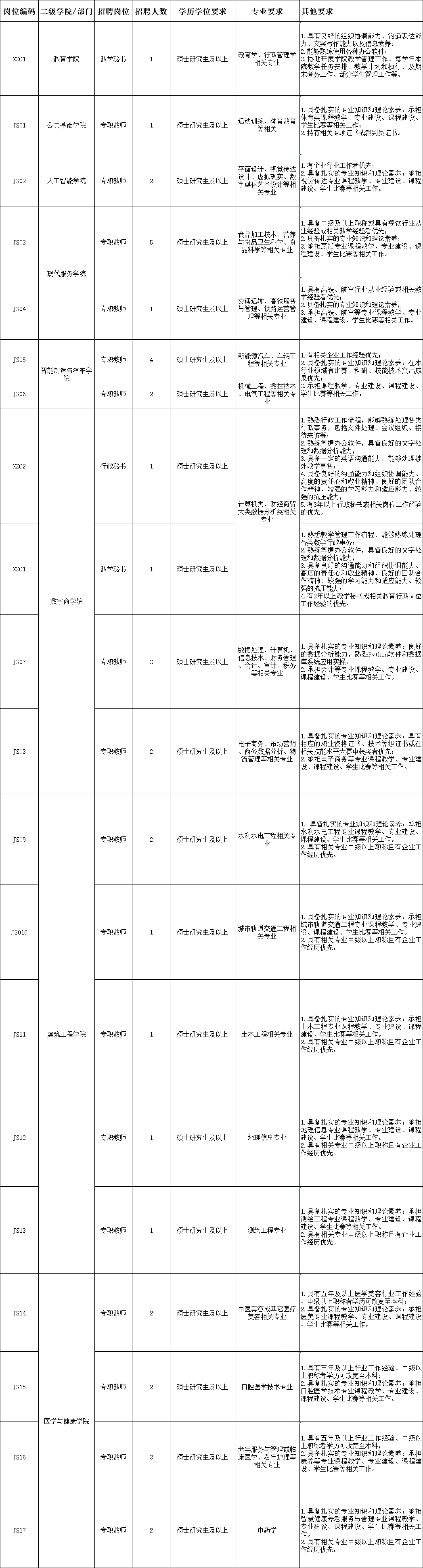 2024年下半年我校高層次人才、專職教師、行政人員全國招聘計(jì)劃、具體崗位及專業(yè)等要求如下: