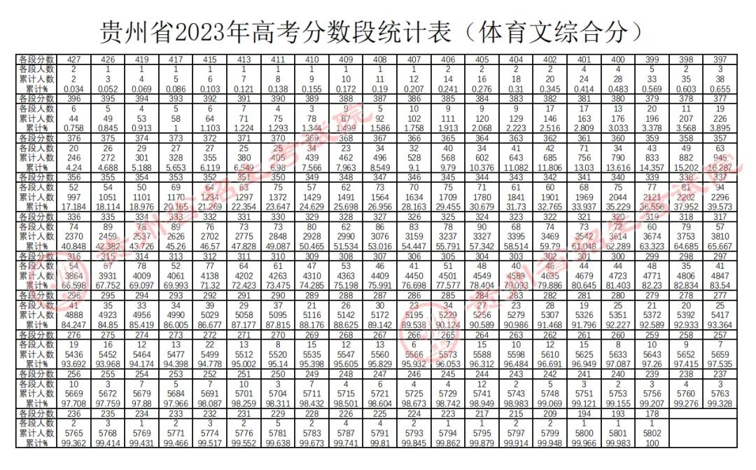 2023年貴州省高考體育綜合分、藝術(shù)類統(tǒng)考本科文化上線專業(yè)成績(jī)分?jǐn)?shù)段統(tǒng)計(jì)表公布