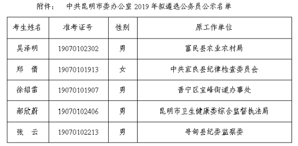 中共昆明市委辦公室2019年擬遴選公務(wù)員人選公示