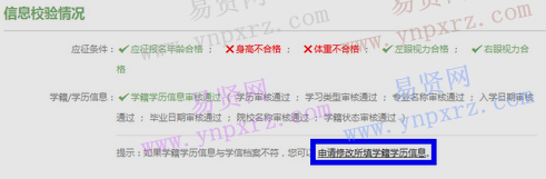 b. 如果學(xué)籍學(xué)歷核驗(yàn)通過(guò),仍要修改學(xué)籍學(xué)歷信息,則需要自己聯(lián)系應(yīng)征地縣級(jí)兵役機(jī)關(guān),先取消自己的“預(yù)征對(duì)象”資格,然后可以參考“情況二”修改自己的學(xué)籍學(xué)歷信息,修改完畢后,系統(tǒng)會(huì)重新審核。