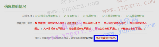 a. 如果“校驗(yàn)結(jié)果”頁(yè)面顯示學(xué)籍學(xué)歷核驗(yàn)不通過(guò),則在校驗(yàn)結(jié)果下方會(huì)有一個(gè)“提示:學(xué)籍學(xué)歷校驗(yàn)結(jié)果未通過(guò),請(qǐng)根據(jù)您的學(xué)信檔案,修改學(xué)籍學(xué)歷信息”提示鏈接,點(diǎn)擊該鏈接即可修改學(xué)籍學(xué)歷信息,修改完畢后系統(tǒng)會(huì)重新審核您的學(xué)籍學(xué)歷信息。該功能24小時(shí)之內(nèi)只能使用兩次,總計(jì)使用不能超過(guò)10次,請(qǐng)慎重使用。
