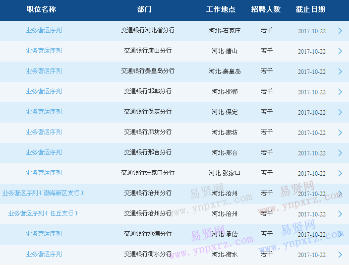 )并注冊(cè),在線填寫個(gè)人簡(jiǎn)歷,申請(qǐng)應(yīng)聘職位。每人最多可申請(qǐng)1個(gè)總行管理培訓(xùn)生職位,1個(gè)總行儲(chǔ)備生職位,1個(gè)總行其他職位,2個(gè)分行或直屬機(jī)構(gòu)職位(不同分行)。職位申請(qǐng)截止時(shí)間為2017年10月22日24時(shí)。