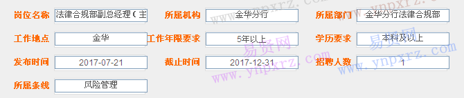 1、原則上年齡40周歲及以下,全日制本科及以上學歷,法律相關(guān)專業(yè)畢業(yè);2、熟悉本地監(jiān)管規(guī)定和金融法律,熟悉銀行業(yè)務(wù)管理流程; 3、在商業(yè)銀行或金融行業(yè)法律或合規(guī)部門擔任過負責人的可以適當放寬要求。